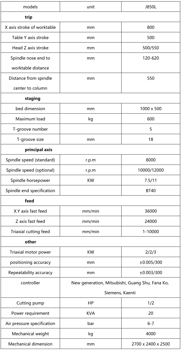 ★JV series machines, in addition to the good spindle function, more high-speed, high efficiency injection of excellent ATC, tool change speed and fast displacement speed.